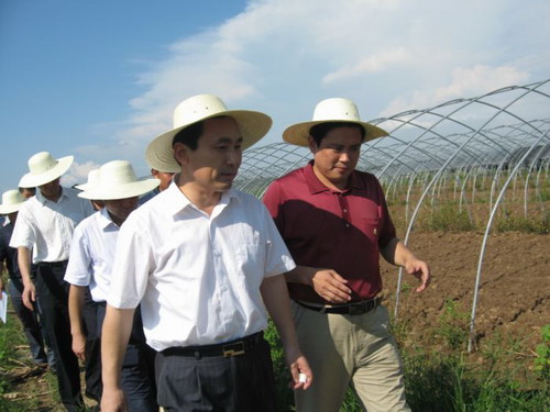 7月7日,安庆市委书记朱读稳在市直有关部门负责同志的陪同下,到大观区海口镇和皖河农场,深入到田间地头,仔细了解2万亩无公害蔬菜基地的建设进度,就菜篮子工程建设进行调研。