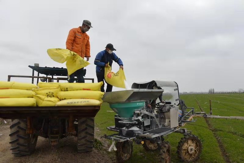 目前,在农场公司的有序安排下,近2万亩小麦已基本完成施肥任务。(王桂娟)