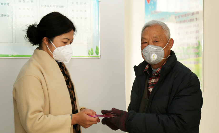 图为华阳河农场公司退休党员胡发珍向支部负责人捐款