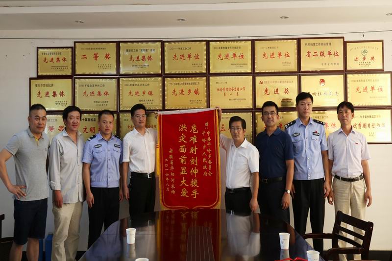 815,安徽农垦集团经合部部长王伟、华阳河农场党委书记王洪领队到宿松县千岭乡开展慰问活动,对乡党委政府、木梓学校、派出所和医院关心支持农场受灾职工群众的安置工作,表达感激之情,并分别赠送了锦旗。