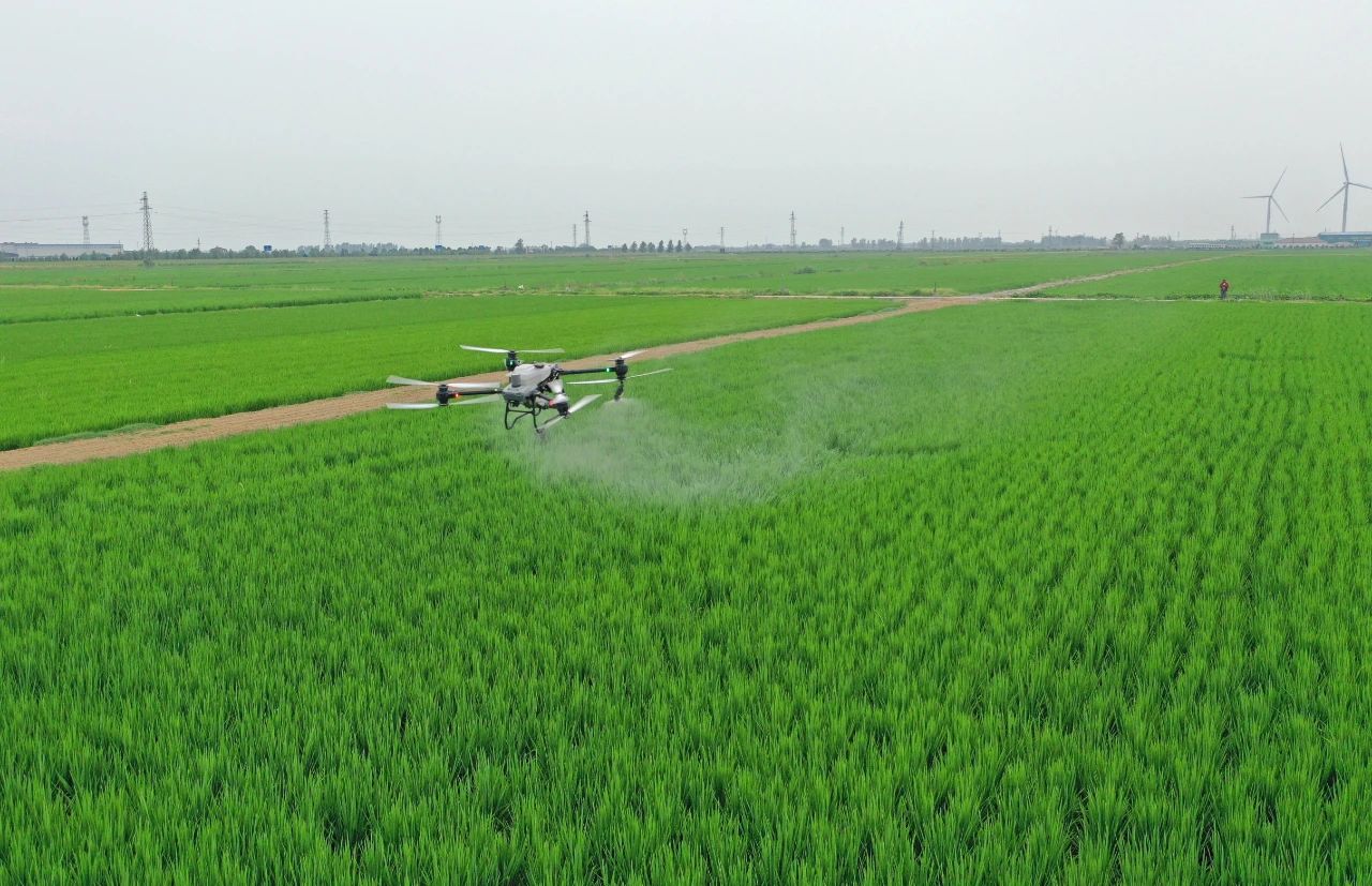 面对持续高温挑战,农场公司农技部门迅速行动,指导各农业生产单位启用新型无人植保机进行高效飞防。据了解,无人机每小时防治面积约100亩,不仅效率高,防治效果也十分显著。