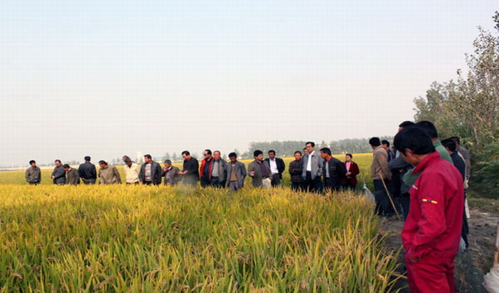 与会人员前往农业三、四、五分场及农科所试验田,实地观摩了机插稻、旱直播稻、人工插秧水稻等不同田块的长势情况和农科所40多个试验示范品种,任传军就水稻不同品种选择、栽插方式、田管技术措施对产量的影响进行了现场对比分析,结合几种栽插方式、品种特性、肥水管理、病虫草害防治措施等,系统细致地讲解了当前农场水稻产业发展中存在的技术问题及解决方法,并就今年秋种工作注意事项作了强调要求。
