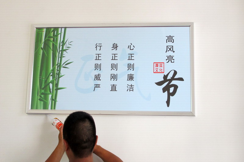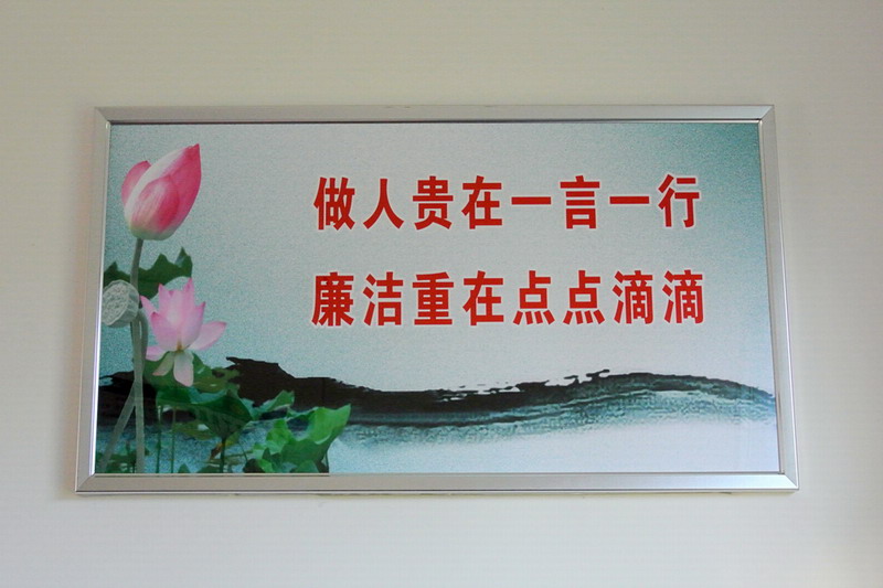 自去年底在场部机关悬挂廉洁标识语匾牌以来,农场党委今年将此举向基层、社区延伸,按照《廉洁文化建设实施方案》的要求,稳步推进创建活动,力促“六进、四上”,形成了贴近实际、凸显特色、入脑入心的廉洁文化品牌,营造了农场崇廉尚廉守廉的浓厚氛围。(石野兵)