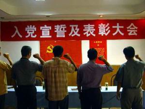 6月30日上午,大圹圩农场召开入党宣誓及表彰大 会,隆重纪念中国共产党成立83周年。会议举行了 入党宣誓仪式,有5名新党员面对党旗宣誓,光荣加 入了党组织。会议对过去一年中为农场“三个文 明”建设和党建工作作出突出贡献的4个先进党支 部、2个先进党小组、17名优秀共产党员和8名优秀 党务工作者给予了通报表彰。会议还组织与会党员 观看了反腐倡廉警示教育片。 (杨朝幸)