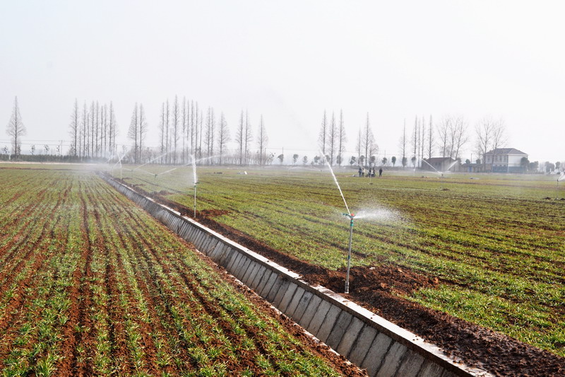 潘村湖农场:麦田自动喷灌节水抗旱